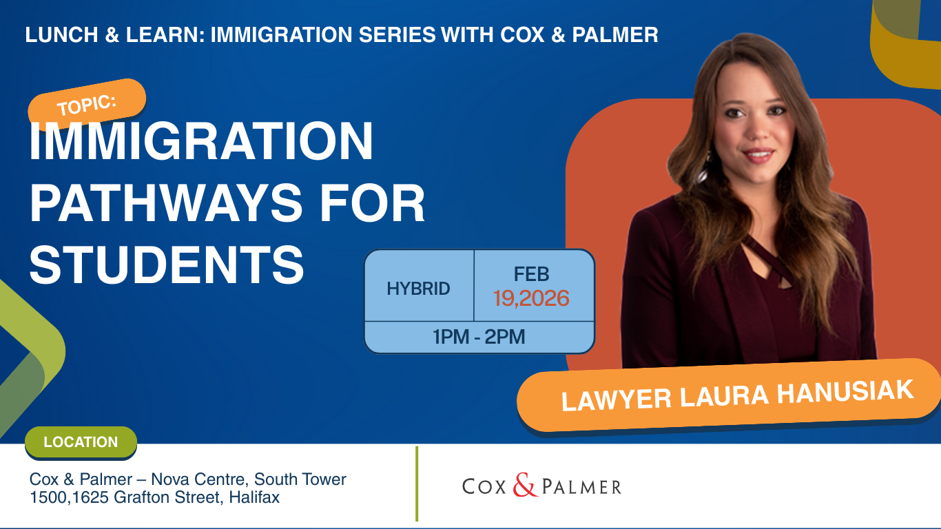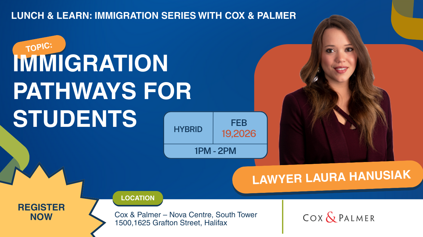 This Lunch & Learn session will be focused on immigration pathways specifically tailored for international students in Nova Scotia. The event aims to demystify immigration options, equip students with clear information, and connect them with helpful resources to support their long-term settlement and career goals.